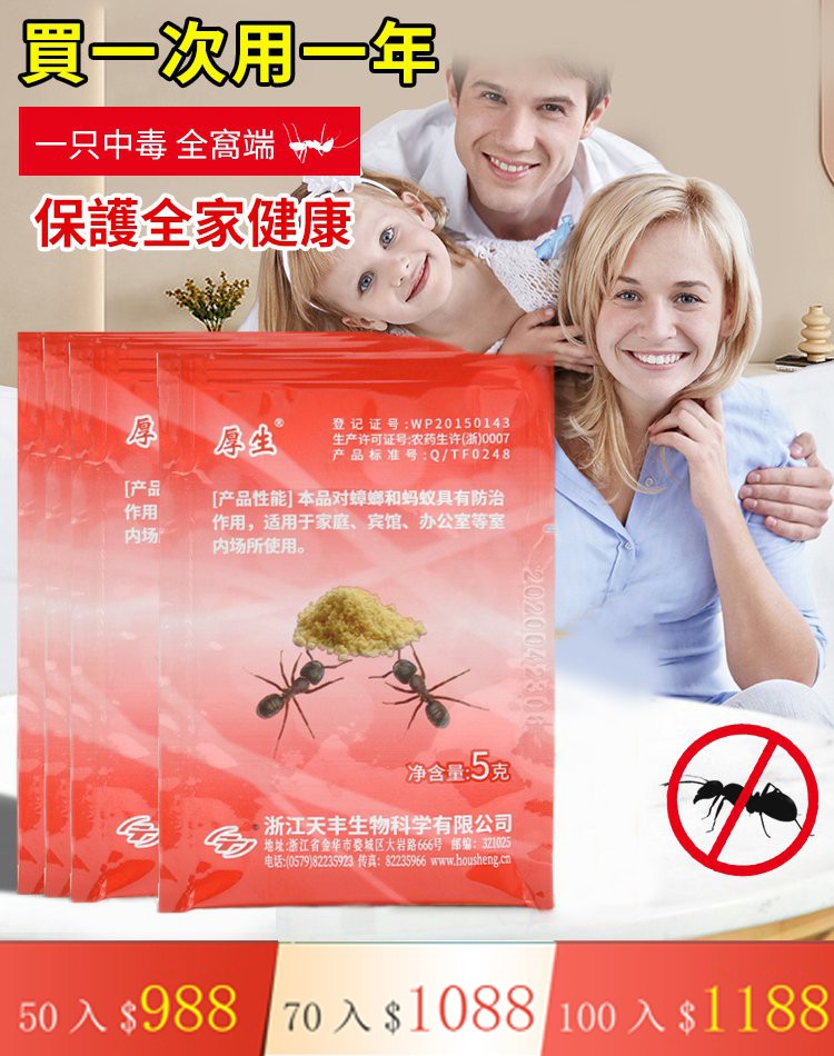 5分鐘前限時搶購 厚生螞蟻藥 火爆熱銷中!官方正品,免費試用!24小時在線客服,不好用直接退!售後無憂 - 超夯活動: 50包 NT$988