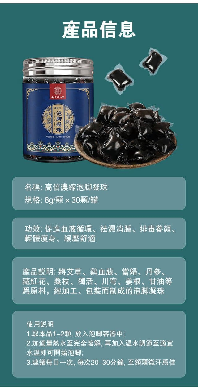5分鐘前吳醫師推薦【古法泡脚凝珠】18味草本中藥萃取,8倍濃縮,古法秘制,遇水即溶,每天只需一顆,讓你泡出濕氣,清除體內毒素垃圾,告別虛胖肥腫,疏通經絡,更能使全身氣血通暢,防止靜脈曲張,泡出好身體! - 二送二【4大瓶共120顆 NT$1198】優惠組